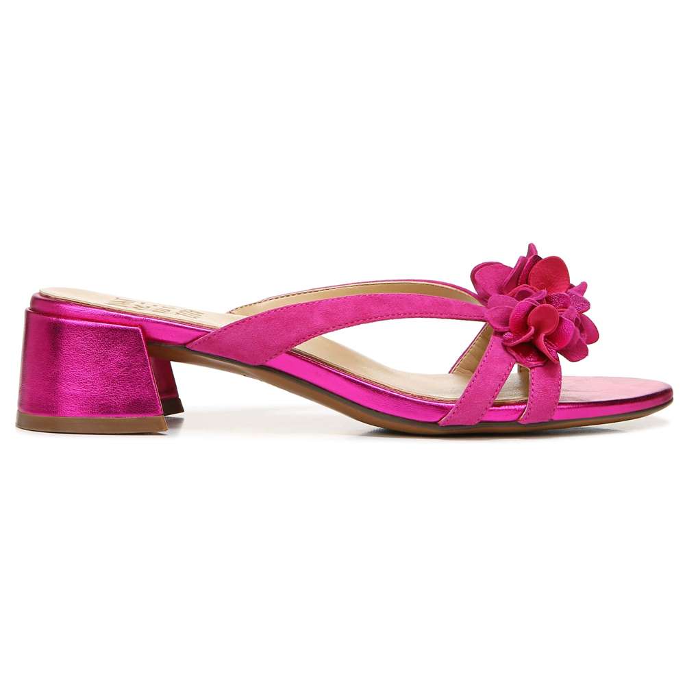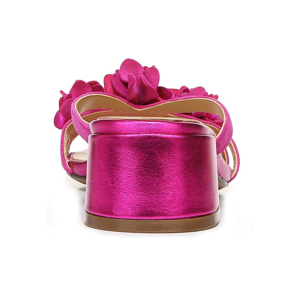 Embrace all things floral this season with a slide sandal featuring a walkable heel.