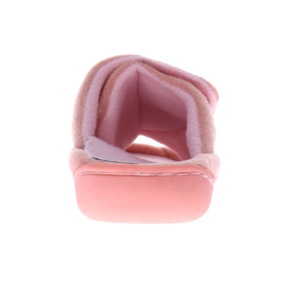 Open toe hook and loop slipper designed for all four seasons, giving you comfort and support all the time. Open back design for easy slip on and off. Textile upper and a workforce insert for added support.