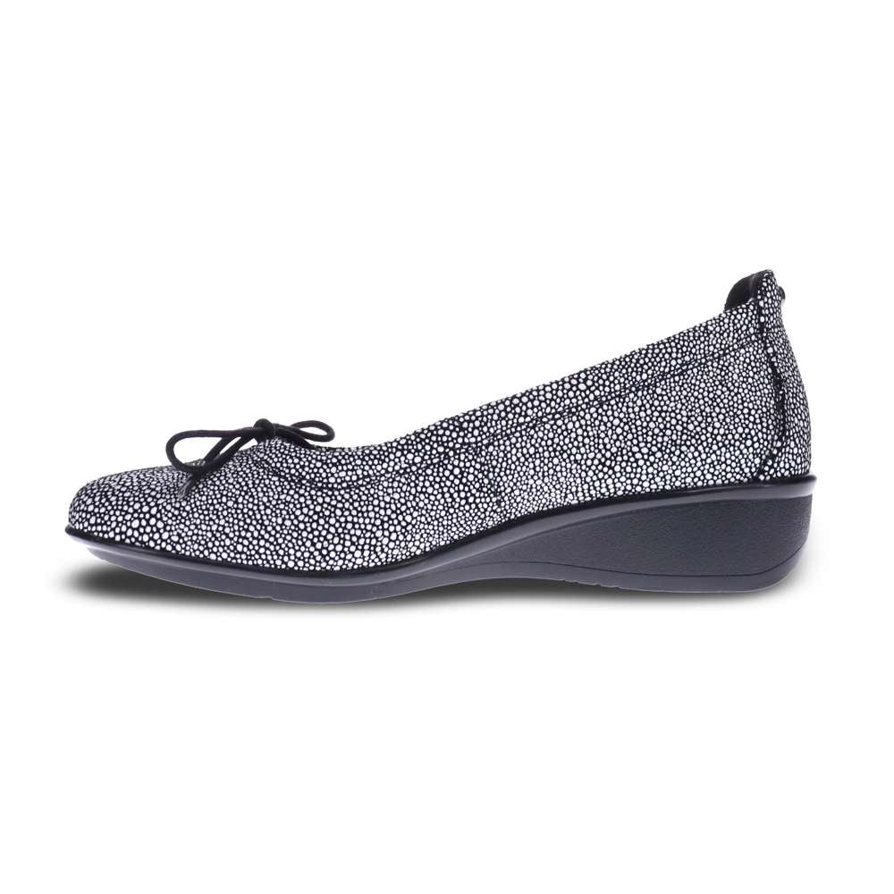 Marrakesh blends a subtly sporty, fully functional silhouette with undeniably feminine features. Sleek uppers made from supple and textured leathers complement a delicate bow detail that adorns the vamp of this gorgeous demi-wedge. Topline features a hint of stretch and adjustability. Removable comfort footbed with built-in arch support allows the insertion of custom orthotics. Forefoot Cushion Zone for added comfort.