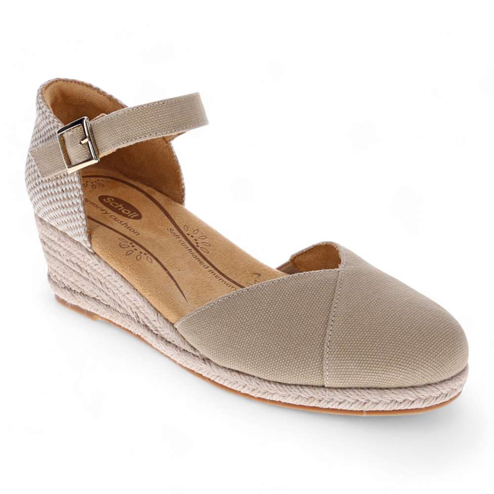 Step into effortless summer style with Maya. Crafted with a soft canvas upper and a woven espadrille-inspired wedge, this sandal blends casual elegance with everyday comfort. The adjustable ankle strap and hidden elastic gusset ensure a secure, flexible fit, while the cushioned footbed with Scholl’s Memory Foam Technology keeps you supported all day. Finished with a lightweight TPR outsole and a 5.5cm heel, Maya is the perfect balance of height, stability, and comfort - ideal for dressing up or keeping it relaxed.