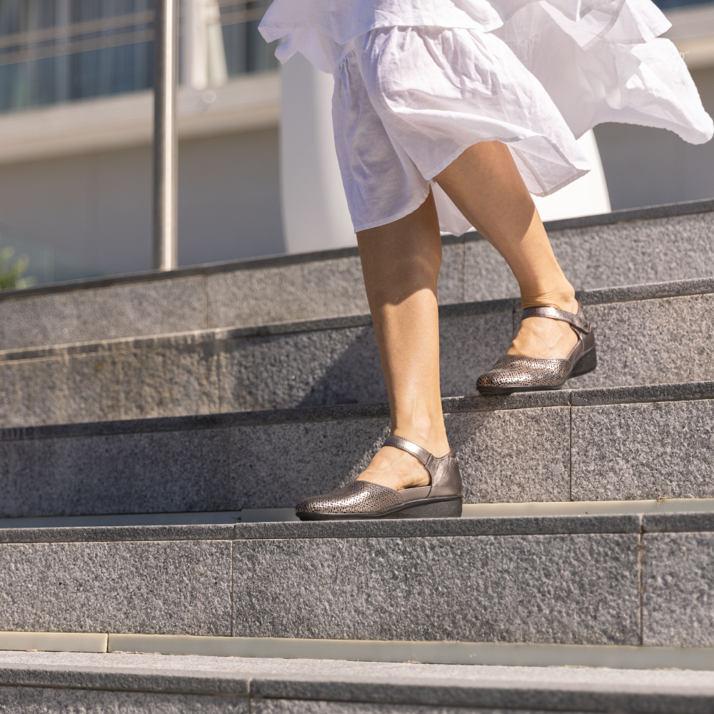 Delicate perforations adorn these stylish mary jane shoes, ensuring a soft, flexible fit. A tapered wedge adds just enough height, bridging the gap between work and weekend-wear. Like its namesake city, Osaka brings together modern styling while paying homage to a traditional silhouette. These orthopedic shoes for women feature a removable insoles which allows for the insertion of custom orthotics.