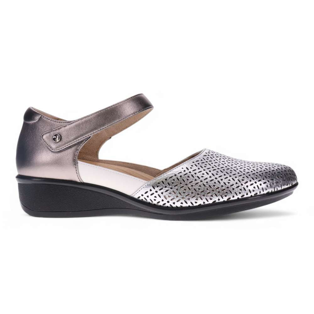 Delicate perforations adorn these stylish mary jane shoes, ensuring a soft, flexible fit. A tapered wedge adds just enough height, bridging the gap between work and weekend-wear. Like its namesake city, Osaka brings together modern styling while paying homage to a traditional silhouette. These orthopedic shoes for women feature a removable insoles which allows for the insertion of custom orthotics.